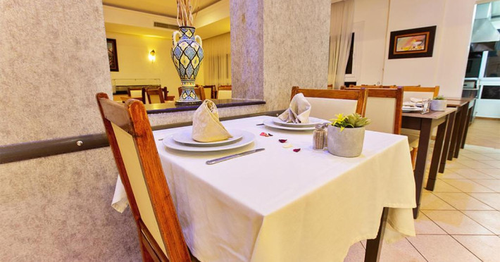 Hotelul Tildi Agadir are 2 restaurante care servesc preparate din bucătăria internatională si marocană. Barul are o terasă mare cu vedere la ocean si la munți.