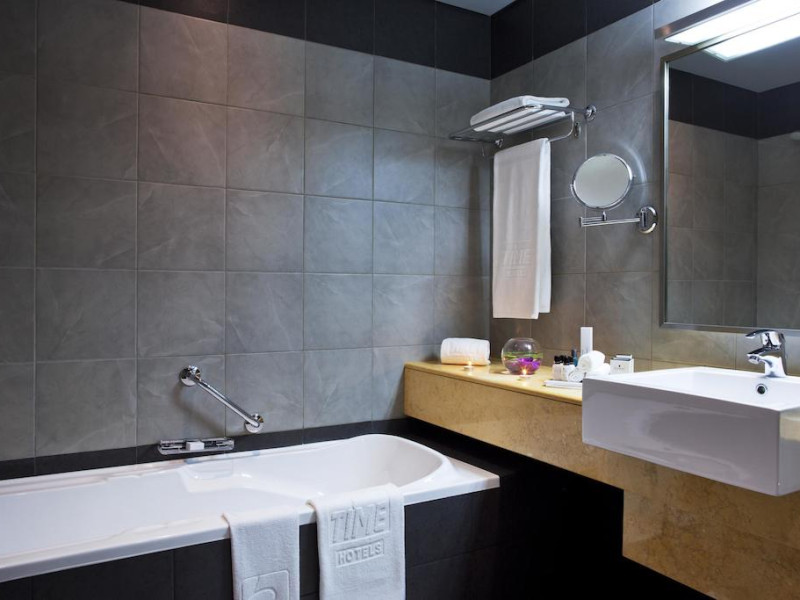 Din facilitățile oferite de proprietate nu lipsesc cele spa, unde oaspeții se pot relaxa la masaj sau la saună. Time Grand Plaza Hotel are în dotare cadă cu hidromasaj. În cadrul proprietatății există piscină în aer liber pentru cei care doresc să se relaxeze și să se bronzeze. Aceasta este prevăzută cu șezlonguri confortabile, prosoape și umbrele de soare.
