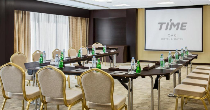 Camerele luminoase de la Time Oak Hotel & Suites sunt dotate cu aer condiționat, Tv și seif. Un minibar și o mașină pentru preparare cafea sau ceai se află în fiecare cameră. Oaspeții pot solicita serviciul de room service pentru a servi masa sau diverse băuturi. Oaspeții au acces gratuit la serviciul Wi-fi în camere. În camere există baie cu cadă sau duș prevăzută cu foehn. Camerele au balcon cu vedere la oraș. Curățenia in cameră se face zilnic. De asemenea, sunt disponibile o zonă de luat masa, o mașină de spălat și un cuptor. Proprietatea oferă camere pentru familie cu o suprafață mai mare și un număr mai mare de paturi față de cele standard.