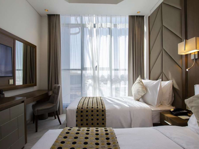 Discover our stylish and modern hotel apartments that are conveniently located near the citys commercial district airport and a number of Dubais tourist attractions and shopping centres. The ideal base for corporate and leisure travelers alike to experience Dubai from the comfort of their spacious and fully-equipped studio one bedroom or two bedroom apartment available on a daily weekly monthly or yearly basis. The hotel apartments boast a heated outdoor swimming pool fully equipped gym restaurant cafe and a meeting room available for events to ensure that you enjoy an unparalleled and unforgettable stay with everything that you need.Enjoy the privacy and comfort of a residence-style suite along with all the services of a hotel.Discover our stylish and modern hotel apartments that are conveniently located near the citys commercial district airport and a number of Dubais tourist attractions and shopping centres. The ideal base for corporate and leisure travelers alike to experience Dubai from the comfort of their spacious and fully-equipped studio one bedroom or two bedroom apartment available on a daily weekly monthly or yearly basis. The hotel apartments boast a heated outdoor swimming pool fully equipped gym restaurant cafe and a meeting room available for events to ensure that you enjoy an unparalleled and unforgettable stay with everything that you need.Enjoy the privacy and comfort of a residence-style suite along with all the services of a hotel.
