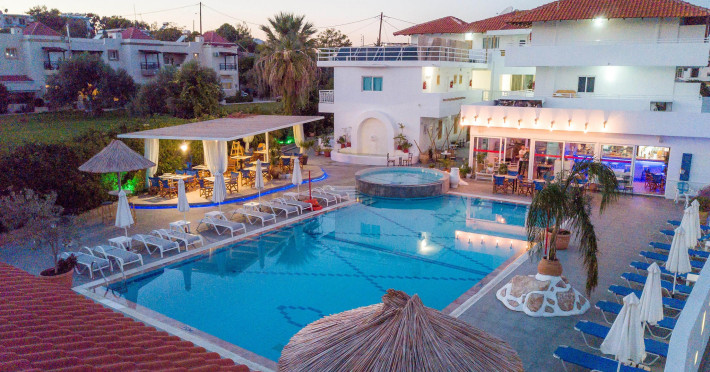 The Tinas Plus enjoys a great central location, just five minutes walk from Faliraki beach, and close to the wide range of local shops, bars and nightclubs.With its fresh, modern decor and laid-back atmosphere, it's a great pick for those wanting to enjoy the best of this lively resort in beautiful surroundings.The hotel is 800m from the beach.The hotel is 17km from Rhodes Airport.All of the property's colourful and contemporary guest rooms include an en-suite bathroom with shower, air conditioning, flat-screen TV, fridge, safe and a balcony, with some also including self-catering facilities. With room types ranging from comfortable twin rooms and apartments to luxurious junior suites, there's a home-from-home here to suit every budget.There's an a la carte restaurant on site serving a range of delicious cuisine, along with a relaxed snack bar and a drinks bar.There's a spacious outdoor pool perfect for cooling off from the sun, surrounded by a relaxing terrace with loungers and beautiful flowers. There's also billiards, darts and Wi-Fi access on offer.The Tinas Plus enjoys a great central location, just five minutes walk from Faliraki beach, and close to the wide range of local shops, bars and nightclubs.With its fresh, modern decor and laid-back atmosphere, it's a great pick for those wanting to enjoy the best of this lively resort in beautiful surroundings.The hotel is 800m from the beach.The hotel is 17km from Rhodes Airport.All of the property's colourful and contemporary guest rooms include an en-suite bathroom with shower, air conditioning, flat-screen TV, fridge, safe and a balcony, with some also including self-catering facilities. With room types ranging from comfortable twin rooms and apartments to luxurious junior suites, there's a home-from-home here to suit every budget.There's an a la carte restaurant on site serving a range of delicious cuisine, along with a relaxed snack bar and a drinks bar.There's a spacious outdoor pool perfect for cooling off from the sun, surrounded by a relaxing terrace with loungers and beautiful flowers. There's also billiards, darts and Wi-Fi access on offer.