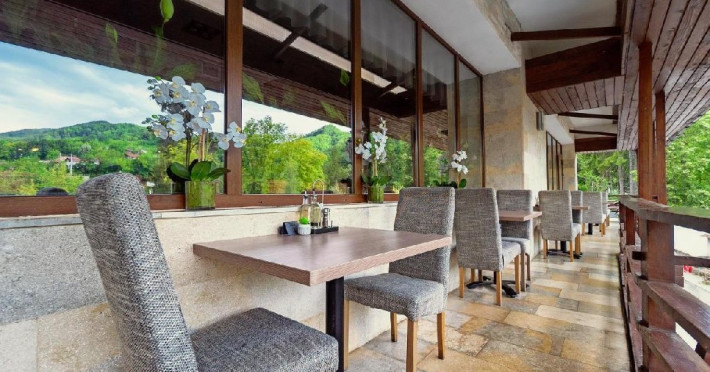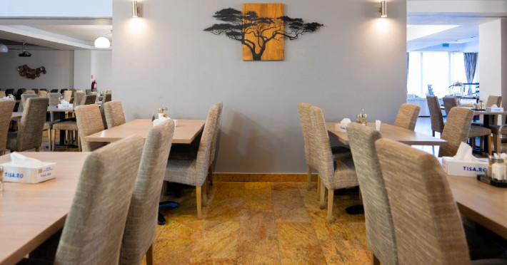 Restaurantul: Are categoria 3*, salonul avand o capacitate de 200 locuri. Este prevazut cu instalatie de sonorizare si iluminat ergonomic. Bucataria este dotata cu utilaje de prelucrare, sali de preparare moderne care asigura calitate serviciilor prestate. Meniul este variat si satisface cele mai exigente gusturi. Restaurantul este completat cu o terasa acoperita, cu 9 locuri. Barul: Clasificat la categoria 3* are 25 locuri si este completat cu o terasa deschisa in sezonul cald.