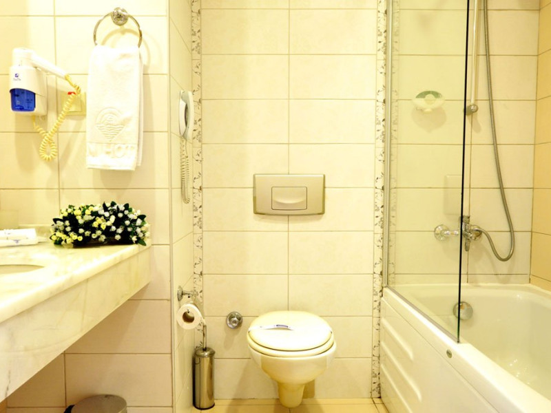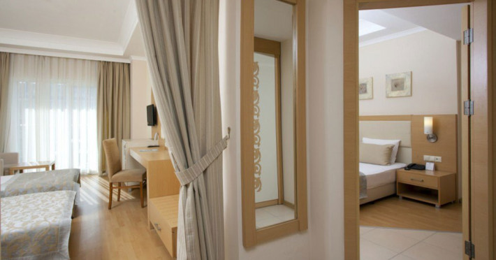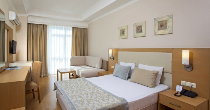 Facilitati hotel: Hotelul dispune de un restaurant principal, 2 restaurante a la carte (cu specialitati din peste si turcesti), snack bar pe plaja, discoteca, 2 piscine exterioare, o piscina interioara, programe zilnice de animatie, aerobic, darts, baie turceasca, centru de fitness, wifi in zonele publice, gradina, 3 Sali de conferinte.