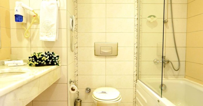 Facilitati camere: Hotelul are 176 camere in total, din care: 169 camere standard (2 pers, 28mp), 5 camere family (max 4 pers, 45mp) si 2 camere pentru persoanele cu diazabilitati. Toate camerele sunt comfortabile si mobilate modern, si sunt dotate cu cada de baie, seif (contra cost), incalzire, aer conditionat, TV prin satelit, uscator de par, telefon, minibar (contra cost), detector de fum, parchet laminat, balcon.