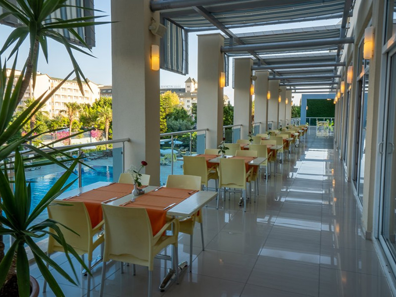 Facilitati hotel: restaurant principal, 2 restaurante a la carte (pescaresc si turcesc), baruri, piscina exterioara, tobogane, piscina interioara, piscine pentru copii, miniclub pentru copii 4-12 ani, programe de animatie, aerobic, step, gimnastica in apa, boccia, darts, baie turceasca, centru fitness, tenis de masa, volei pe plaja, acces internet wireless, mini discoteca, mini cinema, loc de joaca pentru copii. Servicii cu plata: servicii medicale, coafor, masaje si tratamente in centrul Spa; Wellness, sauna, jacuzzi, magazine, fotograf, spalatorie, telefon, fax, seif in camera, minibar, sala de jocuri, bauturile alcoolice de import, sucurile proaspete de fructe, cafea turceasca, sporturi acvatice, cursuri de scufundari, internet cafe.