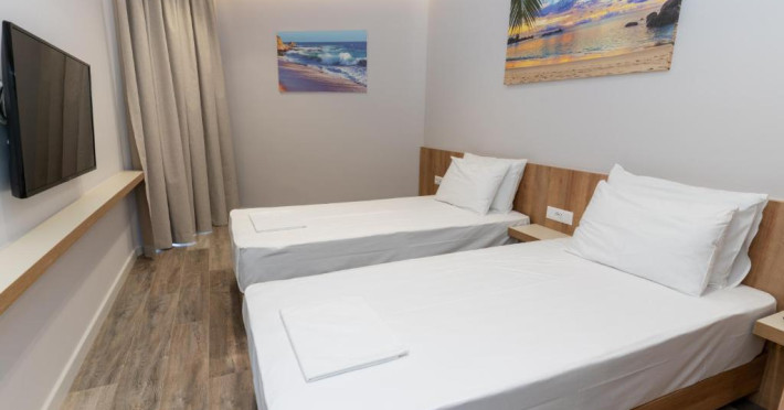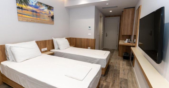 Toate camerele au TV cu ecran plat și baie privată cu duș, uscător de păr și articole de toaletă gratuite. De asemenea, este disponibil și un frigider. Majoritatea camerelor beneficiază de balcon cu vedere la mare.
