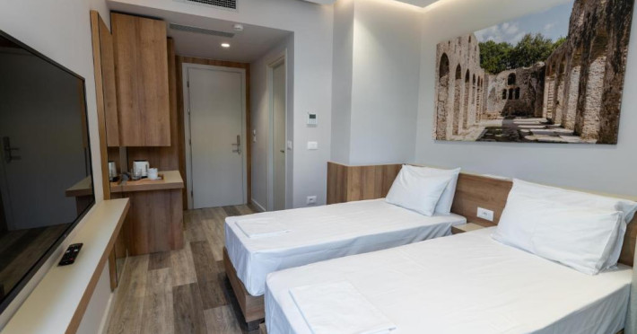 Hotelul Titania este situat pe malul mării, in localitatea Sarandë. Hotelul Titania oferă unități de cazare cu aer și acces gratuit la internet WiFi. Cea mai apropiată plajă se află la cațiva pași.