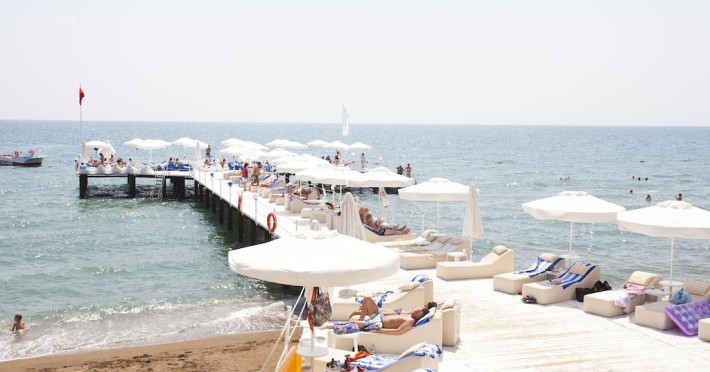 Titanic Beach Lara dispune de plajă privată. Pe plajă există șezlonguri și umbrele de plajă contra cost.