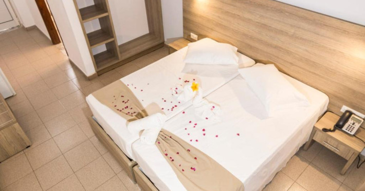 Camerele confortabile de la Tivoli Hotel sunt dotate cu pardoseală de gresie/ marmură, aer condiționat, Tv și seif. Camerele au balcon cu vedere la piscină sau la grădină. În camere există baie cu duș prevăzută cu foehn. Oaspeții au acces gratuit la serviciul Wi-fi în camere. Curățenia in cameră se face zilnic. Proprietatea oferă camere pentru familie cu o suprafață mai mare și un număr mai mare de paturi față de cele standard.