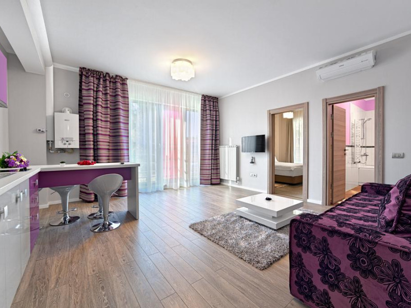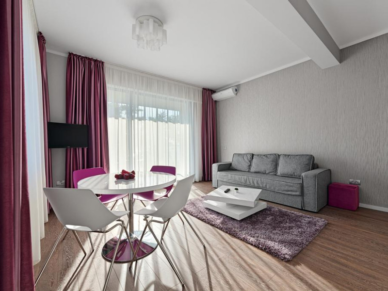 Tomis Garden Aparthotel este situat in statiunea Mamaia, cea mai populara statiune de la malul marii Negre. Tomis Garden Aparthotel este alegerea perfecta pentru familiile ce isi doresc sa se bucure de briza marii, dar si pentru tinerii ce isi doresc un weekend plin de distractie in cele mai bune cluburi din Romania. La mai putin de 8 km departare de Tomis Garden Aparthotel se afla Casino Constanta, iar plaja se afla la 1 minut de mers pe jos. Oaspetii Tomis Garden Aparthotel au acces gratuit la parcare privata. Tomis Garden Aparthotel este format din doua apartamente spatioase, cu o terasa perfecta de unde turistii pot admira marea si plaja. Apartamentele sunt dotate cu cele mai noi facilitati pentru ca oaspetii sa se simta ca acasa. Fiecare apartament este dotat cu TV, aer conditionat, bucatarie, baie cu cada, uscator de par, masina de spalat, birou, zona de relaxare, living, telefon, balcon, papuci de casa, garderoba. Oaspetii Tomis Garden Aparthotel pot servi micul dejun Continental alaturi de o cafea delicioasa la barul din incinta complexului. Accesul la internet in Tomis Garden Aparthotel este gratuit in toata locatia. Suplimentar, Tomis Garden Aparthotel pune la dispozitie oaspetilor receptie deschisa non-stop, teren de joaca pentru copii, plaja private, transfer catre aeroport, seif.Datorita dinamicitatii domeniului disponibilitatea ofertelor se modifica de la un moment la altul. De aceea ofertele sunt valabile in limita locurilor disponibile. Agentia nu este responsabila pentru eventualele neconcordante care pot aparea intre informatiile privind tarifele si alte detalii din site si informatiile primite in agentie. In aceste cazuri vor avea prioritate, intotdeauna, informatiile primite in agentie.