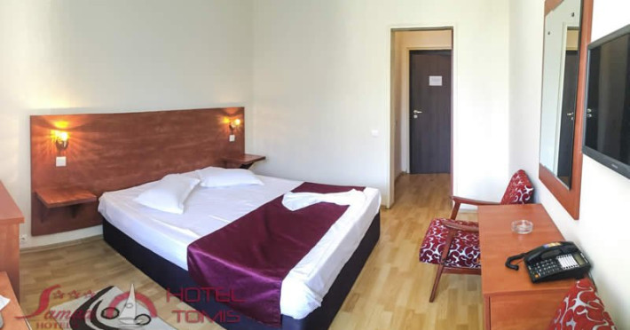 Hotelul este dotat cu salon pentru mic dejun, terasa, bar de zi, parcare proprie in limita locurilor disponibile, camera bagaje, internet wireles in camere si spatiile comune.Hotelul Tomis dispune de camere duble, camere superioare si apartamente dotate cu aer conditionat, mobiler nou, parchet laminat, bi renovate, TV cu LCD, mini-frigidere.