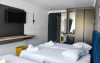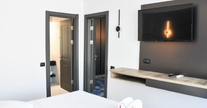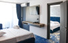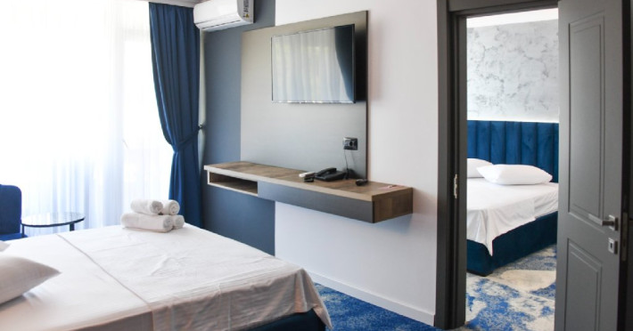 Apartamentele luxury cu vedere la mare sunt compuse dintr-un living cu canapea extensibila, baie si dormitor cu pat matrimonial. Intre dormitor si living exista usa separatoare.
