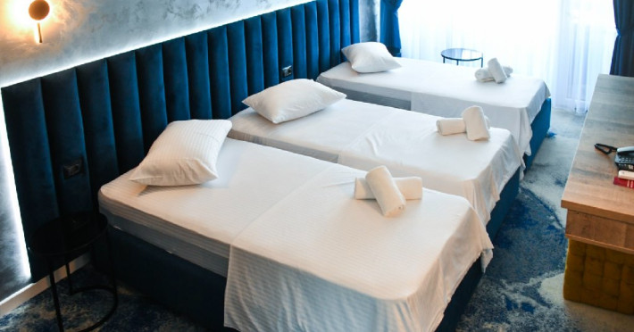 Camerele triple luxury sunt mai spatioase si au in dotare, 3 paturi de o persoana din care 2 se pot uni. Suprafata aproximativ 18 mp.