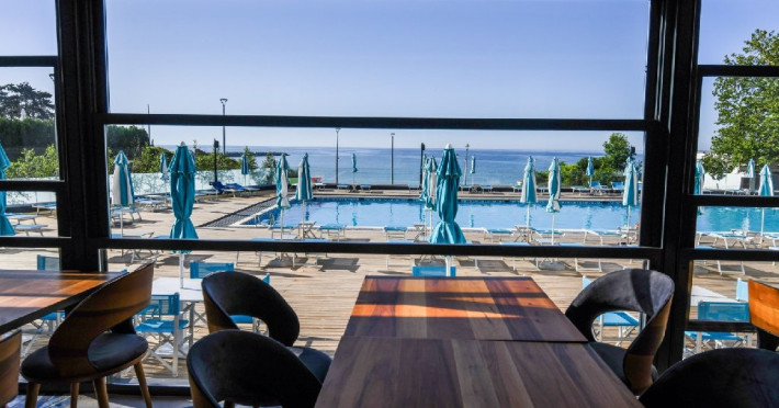 Hotelul Topaz beneficiaza de parcare gratuita in limita disponibilitatii, piscina exterioara cu belle-view, cu o priveliste impresionanta asupra marii, dusuri, o terasa cu restaurant si acces gratuit la sezlongurile de pe plaja.