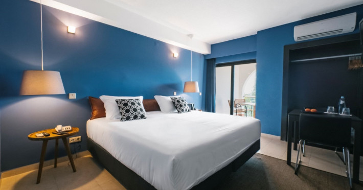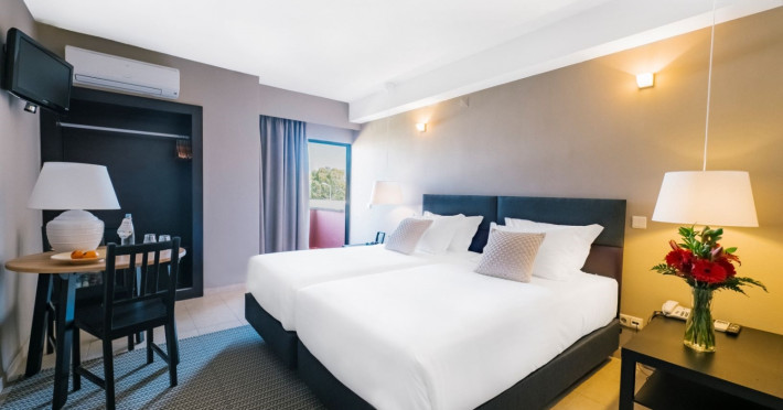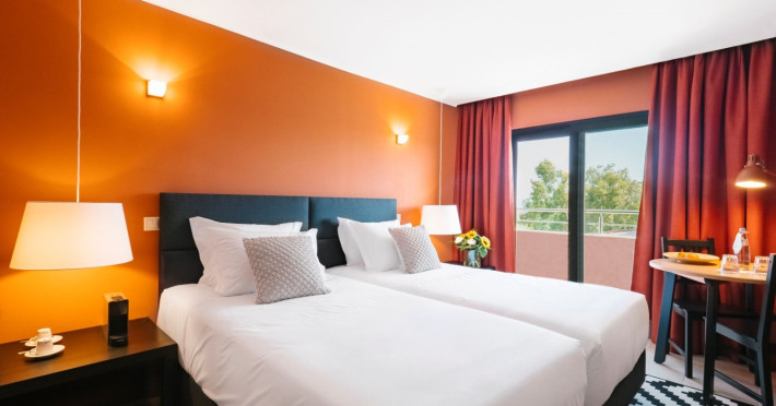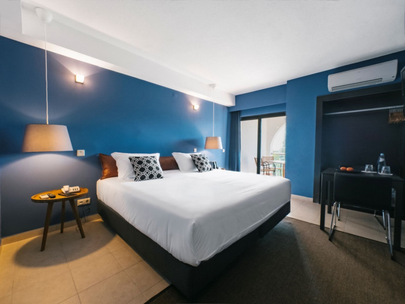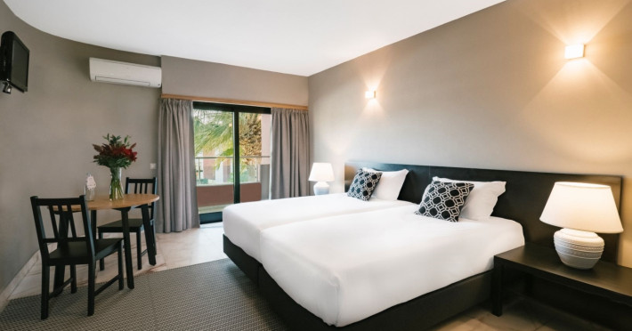The unit is characterized by an elegant accommodation and modern design, highlighting a relaxed and homelike atmosphere. The hotel comprises 86 rooms, of which 9 are studios, 21 are T1 apartments and 5 are T1 bungalows. All the rooms are equipped with air conditioning, satellite TV service and Wi-Fi access, for the best enjoyment of the clients. Other facilities include a desk, phone, safe box, private bathroom, free toiletries, hair dryer, bath tub only and heating. For the 1 Bedroom apartments, studios and bugalows is also available a kitchenette equipped with electric hob, fridge, microwave and cooking utensils.