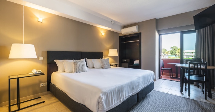 With a privileged location, situated 500 meters from the beach, Topázio Vibe has all the amenities in a short distance. The hotel has a pleasant outdoor area with garden, swimming pool and pool bar w...Hotel Topázio is located in Areias de S. João, 500 meters from Aveiros Beach. It has an outdoor pool and modern apartments and rooms with a private balcony. The rooms and apartments at the Topázio Ho...