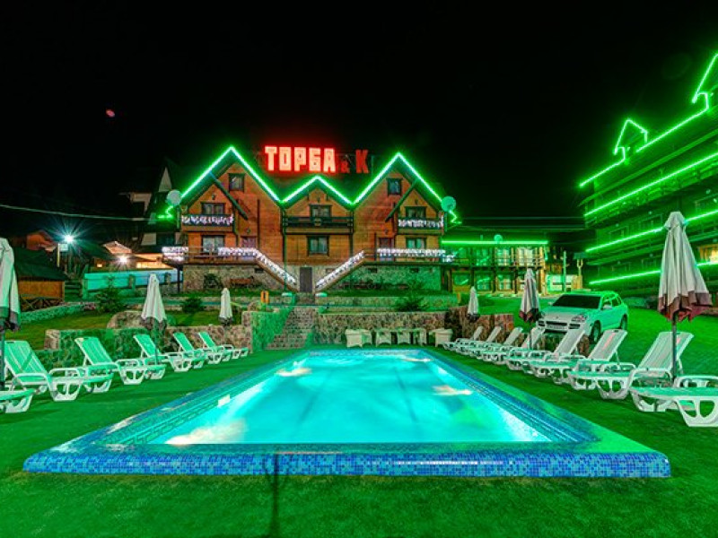 Localizare: Complexul hotelier 'Torba' este situat in satul Polanica, intr-un colt pitoresc al Muntilor Carpati, la 500 metri de statiunea de schi Bukovel.Descriere: 'Torba' combina confortul cu succes, ospitalitatea ucraineana si preturile accesibile, ideale pentru vacante de familie si pentru grupuri mari de turisti.