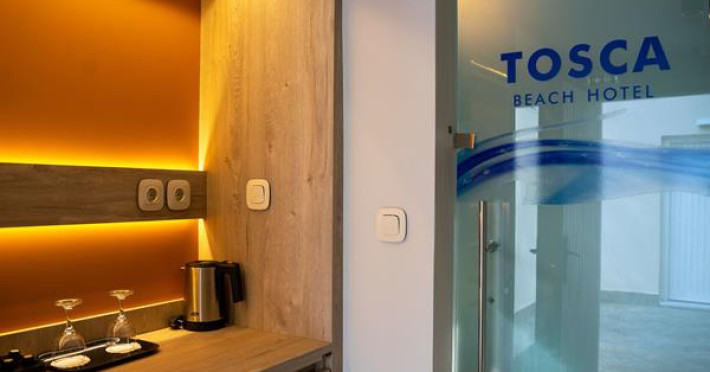 Hotelul Tosca Beach are o locatie excelenta, bucurandu-se de frumusetea naturii dublata de lux si de proximitatea cu orasul Kavala, cu oferta sa de posibilitati de distractie si de viata de noapte. Clientii sai pot vizita de asemenea si alte atractii, monumente istorice si religioase ale regiunii. Hotelul ofera spatii de cazare moderne in stil bungalou cu balcon privat, echipate cu frigider, aer conditionat si tv.