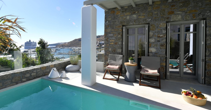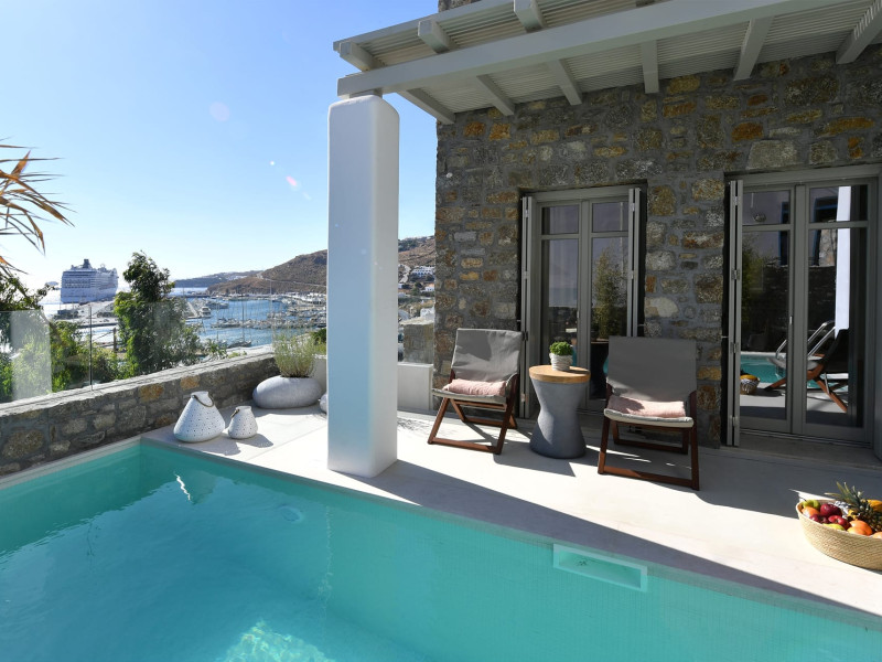 Tourlos Seaview Villa Mykonos is a 300 sq.m. three-level property offering stunning sea views. The ground floor features the main entrance, a fully equipped open-plan kitchen, dining area, living room, and two sea-view double bedrooms with direct access to the private pool. The upper level includes three en-suite bedrooms, including a spacious master suite. The lower level hosts two additional en-suite double bedrooms and a laundry area.Tourlos Seaview Villa Mykonos is a 300 sq.m. three-level property offering stunning sea views. The ground floor features the main entrance, a fully equipped open-plan kitchen, dining area, living room, and two sea-view double bedrooms with direct access to the private pool. The upper level includes three en-suite bedrooms, including a spacious master suite. The lower level hosts two additional en-suite double bedrooms and a laundry area.