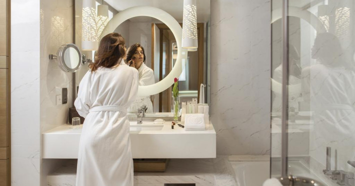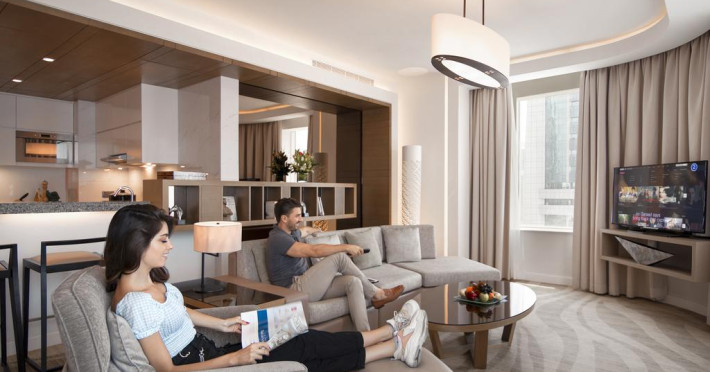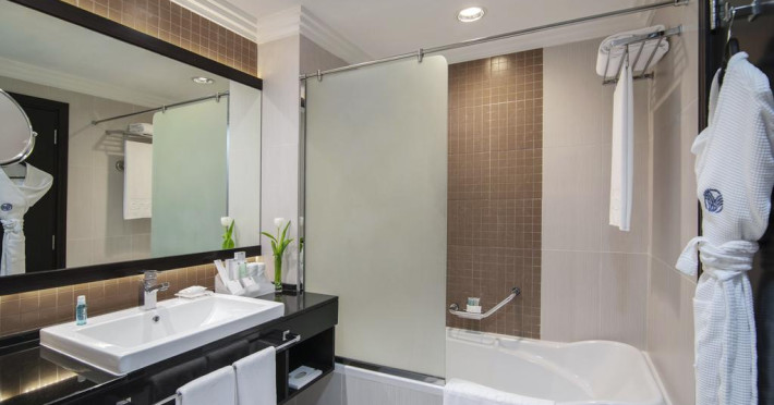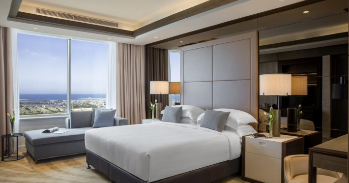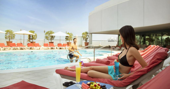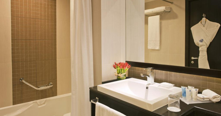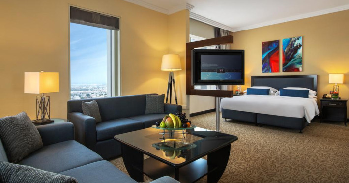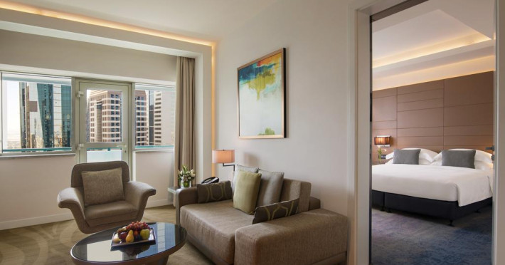 Towers Rotana are în apropiere o plajă cu nisip. Pe plajă există șezlonguri și umbrele de plajă contra cost.