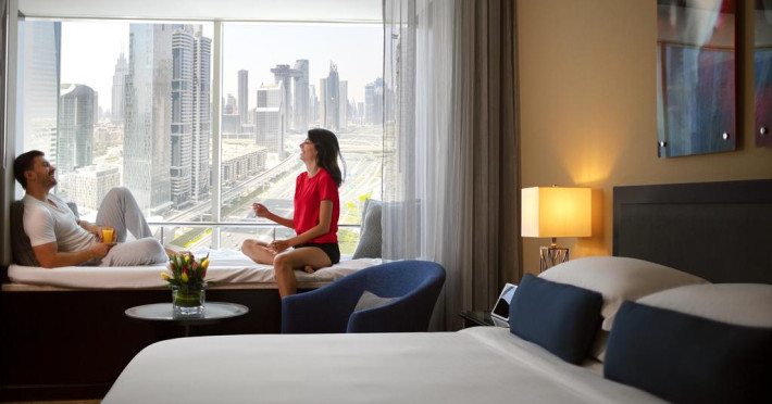 Această proprietate de 4 stele se află în Dubai, pe faimoasa Sheikh Zayed Road, și oferă unități de cazare cu aer condiționat și o piscină în aer liber, cu șezlonguri și umbrele de soare. Facilitățile de la Towers Rotana includ sală de fitness și business center. Proprietatea are, de asemenea, servicii de recepție cu program non - stop, concierge și închirieri auto. Se oferă acces gratuit la internet Wi-fi în spațiile publice. Parcarea este disponibilă la proprietate gratuit.