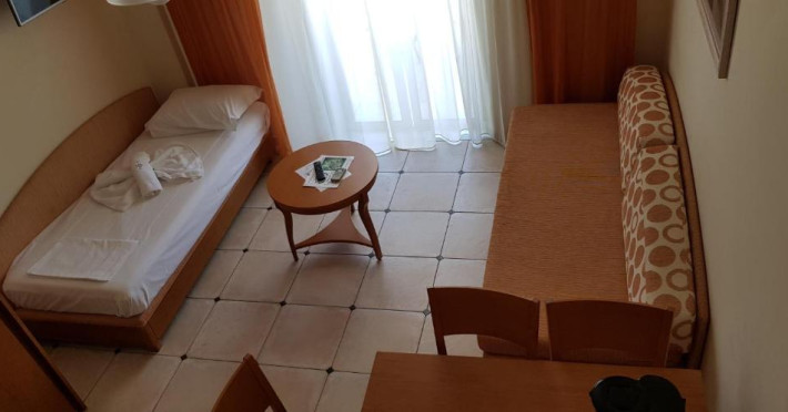 La proprietate există un snack-bar care oferă cafea, băuturi și gustări. Masa poate fi servită atât în interior, cît si în aer liber, pe terasă, în funcție de vreme. Oaspeţii îşi pot pregăti micul dejun şi alte mese şi le pot savura chiar pe balcon.
