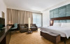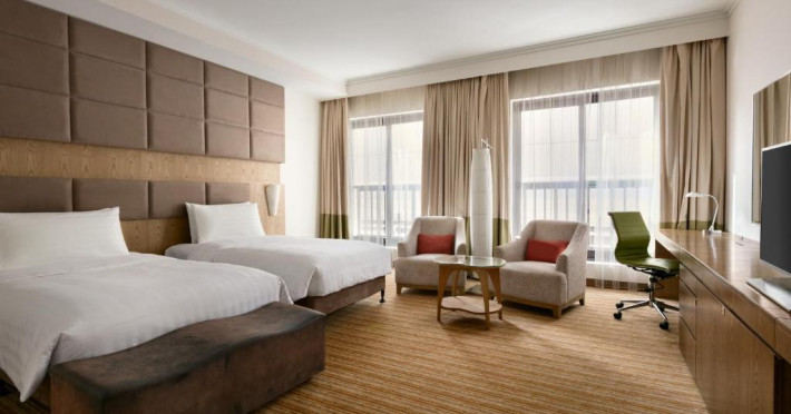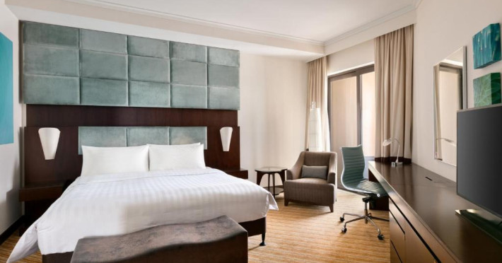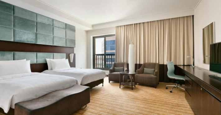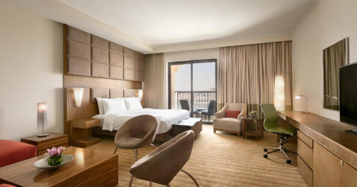 Camerele luminoase de la Traders Hotel, Qaryat Al Beri Abu Dhabi sunt dotate cu mochetă, aer condiționat, Tv și seif. Fiecare cameră dispune de un aparat pentru preparare cafea sau ceai, cană-fierbător și minibar. Oaspeții pot solicita serviciul de room service pentru a servi masa sau diverse băuturi. Oaspeții au acces gratuit la serviciul Wi-fi în camere. În camere există baie cu cadă sau duș, foehn, articole de toaletă gratuite, precum și halate de baie și papuci. Curățenia in cameră se face zilnic.