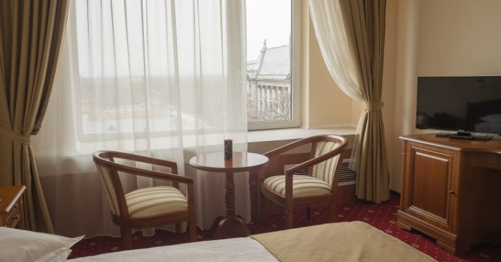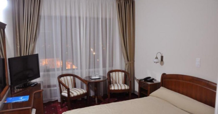 The hotel is located in the historical centre of the city. A number of major tourist places of interest lie nearby the hotel, including a garden with different exotic species of ornamental plants and a large number of historical and religious monuments. This city hotel comprises 105 single rooms, double rooms and apartments. The hotel offers a mix of comfort and tradition and provides a lobby area with 24-hour reception and check-out services, a restaurant and two conference rooms with meeting facilities. Guests may also make use of the hotel safe and newspaper stand. The rooms and apartments include a spacious en suite bathroom with a shower and bath, a direct dial telephone, air conditioning and a minibar. Each of the apartments additionally features a separate bedroom. Further standard amenities include a hairdryer, satellite/cable TV and Internet access. There is a breakfast buffet provided whilst lunch and dinner are served à la carte. On the European road E85 in the direction of Buzau, from Buzau on the national road DN2B in the direction of Braila. Also on the European road E60 in the direction of Slobozia, from Sloboziaon the national road DN21 in the direction of Braila. UNITADatorita dinamicitatii domeniului disponibilitatea ofertelor se modifica de la un moment la altul. De aceea ofertele sunt valabile in limita locurilor disponibile. Agentia nu este responsabila pentru eventualele neconcordante care pot aparea intre informatiile privind tarifele si alte detalii din site si informatiile primite in agentie. In aceste cazuri vor avea prioritate, intotdeauna, informatiile primite in agentie.