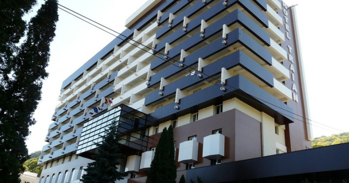 Descriere Hotelul este situat in centrul statiunii. Adresa: Calimanesti- Caciulata, str. Calea lui Traian nr. 559, cod 245601, jud. Valcea Dotari generale: Restaurant, parcare proprie, acces persoane cu dizabilitati. Sali de conferinta: 1 Dotari camere: TV, frigider, baie cu dus, balcon -numai la o parte din camere. . Numr total camere: 254 Duble: 244 Apartamente: 10 - apartamentul este compus din living si dormitor. Servicii si facilitati Servicii masa: Restaurantul Traian (categoria I-a) unde masa se serveste in meniu fix si Intim (categoria a-II-a) unde masa se serveste in sistem fisa cont. Se pot organiza mese festive, simpozioane, cantonamente. Fitness/Wellness/Sport: Piscina cu apa termala -bazin, baza tratament. Tratament: Balneoterapie cu ape minerale in baza de tratament a Hotelului TRAIAN. Aceasta are o suprafata de 1100 mp si poate asigura 1830 proceduri de tratament zilnic. Sunt tratate afectiunile tubului digestiv, hepato-biliare, renale, reumatismale, respiratorii si asociate (dermatologice, ginecologice, astenie, boli profesionale). Toate procedurile de tratament folosesc factori de mediu favorabili: ape minerale, sulfuroase, cloruroase, bromurate, sodice, calcice, magnezice si bioclimatul sedativ. Baza de tratament dispune de spatii amenajate, instalatii si aparatura medicala pentru asigurarea urmatoarelor tratamente si proceduri: balneatie cu ape minerale, hidroterapie, kinetoterapie, masoterapie, electroterapie, terapie respiratorie, buvete. Tratamenetele se efectuaeza sub supravegherea personalului medical. Turistii trebuie sa prezinte la hotel dovada de asigurat (adeverinta de la locul de munca sau cupon de pensie) si bilet de trimitere tip pentru servicii medicale in sistemul asigurarilor sociale de sanatate. In caz contrar, serviciile de tratament vor fi incasate la tarif pentru turist neasigurat iar turistul va fi obligat sa achite diferenta la receptie. Atractii turistice: Manastirea Cozia (ctitorita in 1387 de catre Mircea cel Batran, Domnitorul Tarii Romanesti), cel mai vechi si mai important monument de arhitectura si arta medievala din Tara Romaneasca; Manastirea Ostrov, ctitorita in 1500 de Neagoe Basarab; Ruinele Castrului roman Arutela.