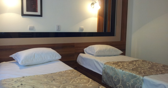 Hotelul Traian este situat in centrul statiunii Caciulata. Facilitati hotel: 508 locuri de cazare care sunt repartizate in 244 camere duble cu doua paturi si 10 apartamente, restaurant, internet wireless in holul receptiei, parcare proprie, acces persoane cu dizabilitati, sala de conferinte, sala de fitness , piscina interioara cu apa termala, baza tratament (bai galvanice, curenti diadinamici, solux, curenti interferentiali, aerosoli individuali, magnetoterapie, ultrasunet, unde scurte, aplicatii cu parafina, masaj, dus subacval, bai bule, ionizare, bai plante, bai minerale (sulf-clorosodice), kinetoterapie, hidrokinetoterapie. Facilitati camere: TV, frigider, baie si grup sanitar propriu, telefon, internet Wi-Fi gratuit.Datorita dinamicitatii domeniului disponibilitatea ofertelor se modifica de la un moment la altul. De aceea ofertele sunt valabile in limita locurilor disponibile. Agentia nu este responsabila pentru eventualele neconcordante care pot aparea intre informatiile privind tarifele si alte detalii din site si informatiile primite in agentie. In aceste cazuri vor avea prioritate, intotdeauna, informatiile primite in agentie.