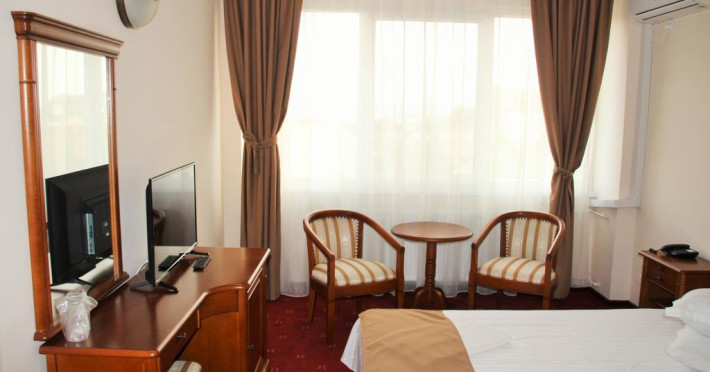 Hotel Traian, situat in orasul Drobeta Turnu Severin este alegerea ideala atat pentru turismul de leisure cat si pentru cel de business.Hotelul pune la dispozitia turistilor : 75 camere single si duble; din care 55 camere categoria 2A si 45 camere categoria 2B. Camerele dispun de : televizor, cablu TV, telefon, minibar, cabin dus sau baie cu cada. Tarifele de cazare includ micul dejun si accesul la parcarea exterioara.