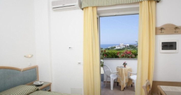 On our wonderful panoramic terrace there is an outdoor mineral water pool not heated at the edges of which are available to our guests deckchairs sunbeds and umbrellas. to enjoy wonderful moments of relaxation in the splendid and warm sunny days of Ischia. Within the facility our customers will have the opportunity to benefit from a relaxing hot bath during the day thank you to the small pool in hot thermomineral water 30 35 with cervical hydromassage waterfall to the small swimming pool in hot mineral water 30 35 with Airpool hydromassage and finally enjoy a healthy and regenerating Turkish bath. The restaurant consists of a comfortable room with a modern style Cuisine with simple flavors with references to regional dishes and traditional Italian flavors. Thanks to the recognized properties of the thermomineral waters of the island of Ischia guests will be able to carry out mud therapy treatments and inhalation aerosol treatments combined with the possibility of choosing from a wide range of curative massages and beauty treatments all this will make your holiday an opportunity for wellbeing and care. CONCIERGE for info and customer assistance. BAR with internal room and external area on the panoramic terrace. Free WIFI available in all common areas. Free motorcycle PARKING subject to availability and free public parking areas white stripes or paid blue stripes nearby. PETS admitted with supplement to be communicated upon booking subject to acceptance of the regulation. Located in a panoramic area from which it is possible to admire the town of Forio with its Saracen towers the domes of the churches and the blue background of the sea on the horizon. It offers the view of unique and romantic sunsets. Distances from the center and port of Forio docking only for Alilauro hydrofoils and pleasure boats only 1 km.about the sandy beach with shallow waters of Chiaia 1.6 km.about and the Bay of Citara GiardiniPoseidon 1.7 km. Approximately. Bus stop that connects with the whole island just 50 meters away.Datorita dinamicitatii domeniului disponibilitatea ofertelor se modifica de la un moment la altul. De aceea ofertele sunt valabile in limita locurilor disponibile. Agentia nu este responsabila pentru eventualele neconcordante care pot aparea intre informatiile privind tarifele si alte detalii din site si informatiile primite in agentie. In aceste cazuri vor avea prioritate, intotdeauna, informatiile primite in agentie.
