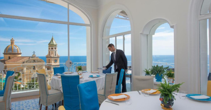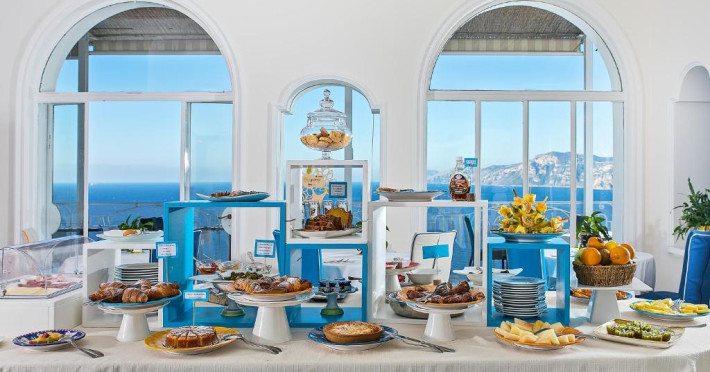 Un mic dejun generos de tip bufet este disponibil pe terasa panoramică. Restaurantul are vedere la Positano si la regiunea de coastă atat din sala de mese, cat si de pe terasă. Meniul propune specialități din Campania alături de preparate vegetariene și opțiuni pentru copii, disponibile la cerere.
