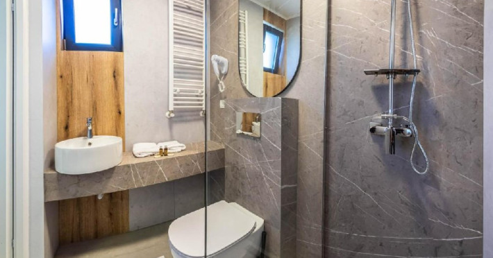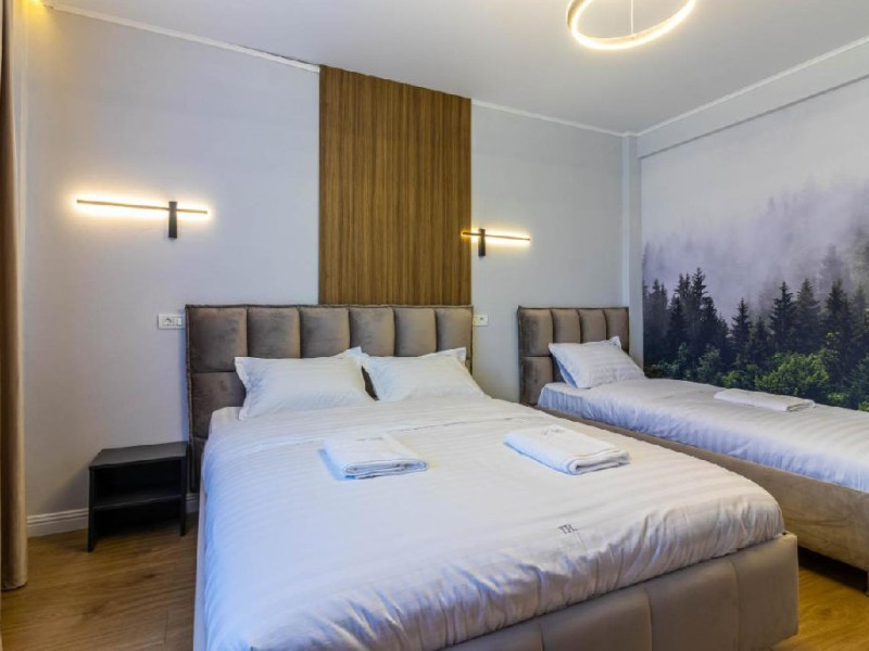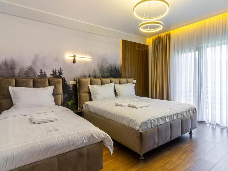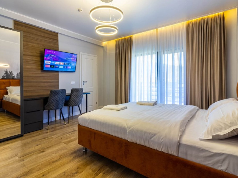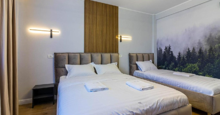 Locatia dispune de: 2 camere duble, 5 camere duble cu balcon, 3 camere triple, 2 camere triple cu balcon si un apartament compus din doua camere duble, cu o capacitate maxima de 4 persoane.