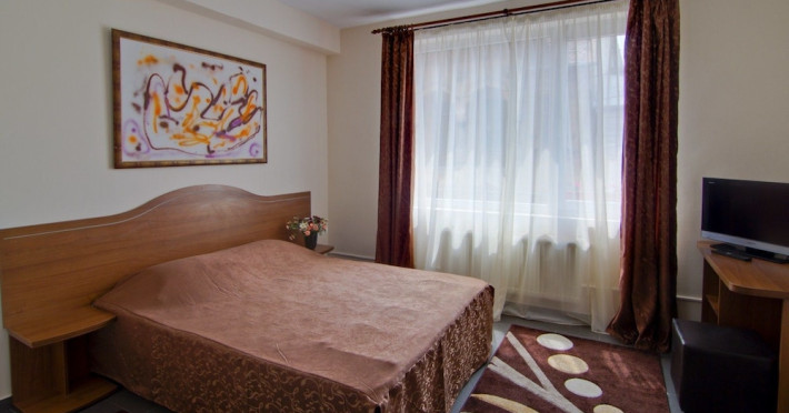 This cozy hotel, located next to the train station, has been renovated in 2011. It has 12 bright rooms, all with air conditioned. If you prefer to travel with pets, this hotel supports them. There is WIFI throughout the hotel. there are a lot of buildings that stand out for their architecture around the hotel. It is only 10 minutes drive from the city center, where you can enjoy all the attractions of the area.Datorita dinamicitatii domeniului disponibilitatea ofertelor se modifica de la un moment la altul. De aceea ofertele sunt valabile in limita locurilor disponibile. Agentia nu este responsabila pentru eventualele neconcordante care pot aparea intre informatiile privind tarifele si alte detalii din site si informatiile primite in agentie. In aceste cazuri vor avea prioritate, intotdeauna, informatiile primite in agentie.