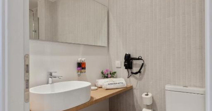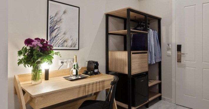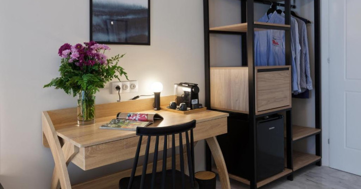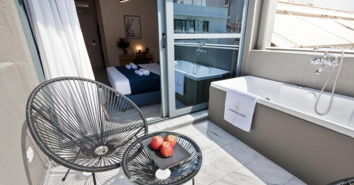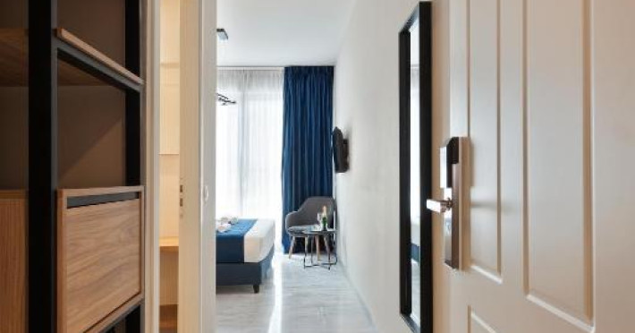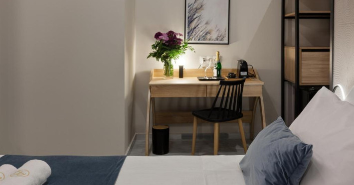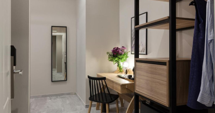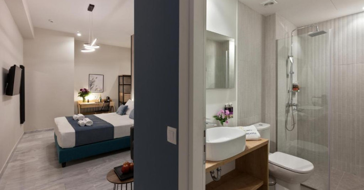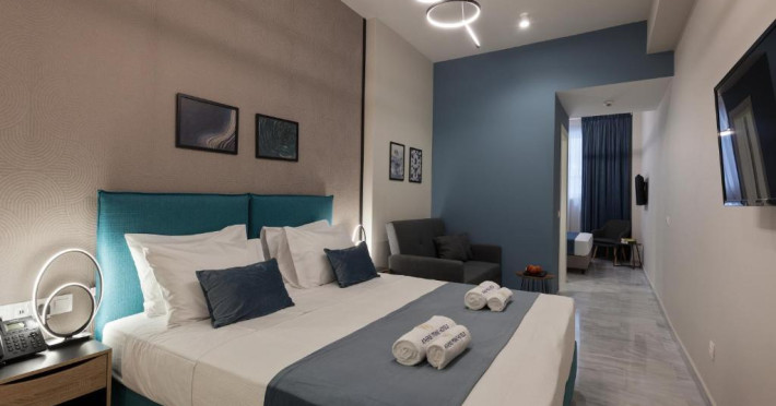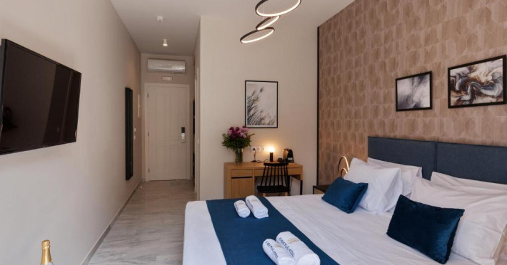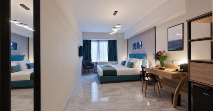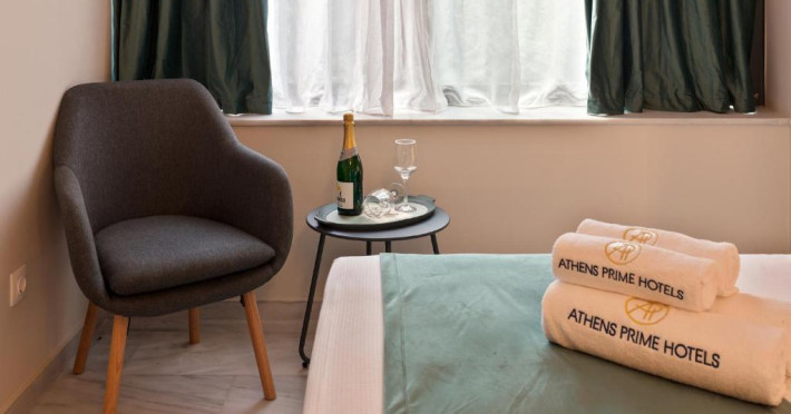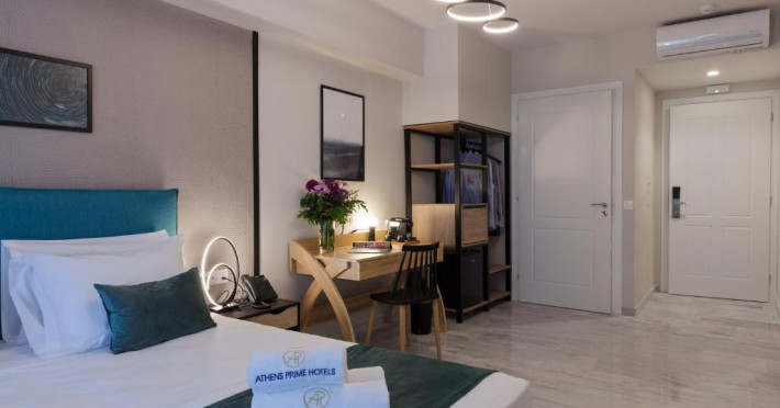 Camerele hotelului au aer condiționat, birou, aparat de cafea, frigider, seif, TV cu ecran plat și baie privată cu bideu. Toate camerele Hotelului Trendy by Athens Prime Hotels au lenjerie de pat si prosoape.