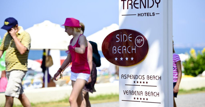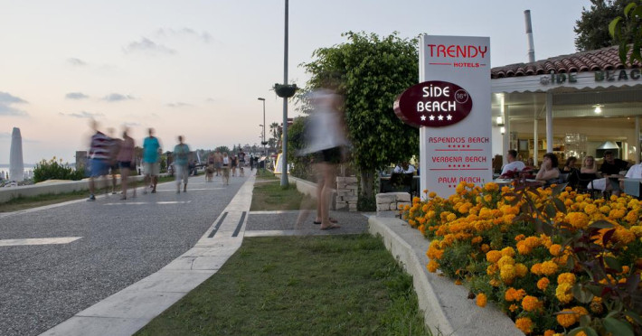 Trendy Side Beach este un complex de 4 stele care se află pe malul mării, în Side (Antalya), și oferă plajă privată, piscină în aer liber și piscină interioară. Facilitățile de la Trendy Side Beach includ sală de fitness și business center. Pentru petrecerea timpului liber oaspeții au la dispoziție activități de agrement pe timpul zilei și programe de divertisment seara. Proprietatea are, de asemenea, servicii de recepție cu program non - stop și închirieri auto. Se oferă acces gratuit la internet Wi-fi în spațiile publice. Parcarea este disponibilă la proprietate gratuit.