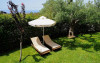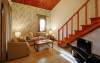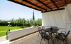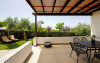 Terasele pavate cu piatra, cu acces direct la gradina, sunt umbrite cu pergole din lemn si ofera un plus de intimitate oaspete de la Trikorfo Beach. Elemente precum acoperișul cu țiglă, tavanul din mobilierul sculpat manual și oferă sejurului un plus de lux modern.