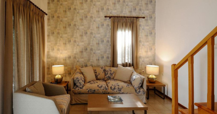 Răspandite prin grădinile complexului Trikorfo Beach, unități de cazare spațioase de tip maisonette oferă o atmosferă primitoare și intimă. Toate unitățile de cazare au un lounge spațios amenajat cu gust, bucătărie bine utilată, TV prin satelit și aer condiționat.