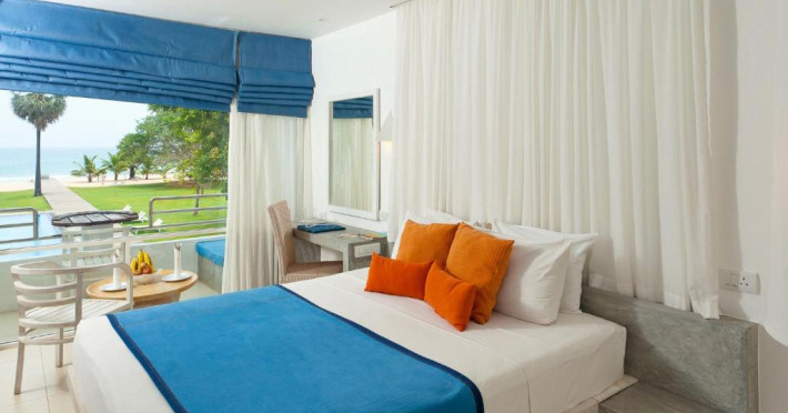 Trinco Blu by Cinnamon is a luxurious 4-star beachfront resort located 6.5 km from Trincomalee. It provides spacious accommodation with a freshwater pool, 3 dining options and free Wi-Fi.