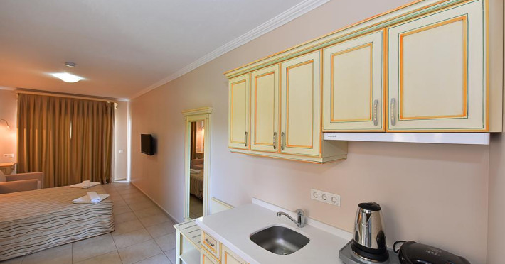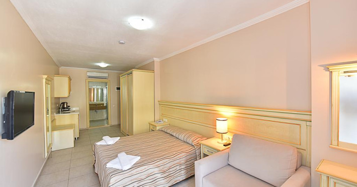 Fiecare cameră dispune de cană pentru prepararea apei calde. Oaspeții pot solicita serviciul de room service pentru a servi masa sau diverse băuturi. În camere există baie cu foehn și articole de toaletă gratuite. Camerele confortabile de la Tropicana Beach Apart au pardoseală de gresie/ marmură, aer condiționat, Tv cu canale prin satelit și seif. Unele camere au balcon cu vedere la mare sau la piscină. Curățenia in cameră se face zilnic. Toate camerele spațioase de la Tropicana Beach Apart au zonă de relaxare cu canapea, ceea ce oferă un plus de confort. Fiecare unitate de cazare include o chicinetă utilată cu frigider, plită de gătit și ustensile de bucătărie. De asemenea, este disponibilă o zonă de luat masa. Proprietatea oferă camere pentru familie cu o suprafață mai mare și un număr mai mare de paturi față de cele standard.