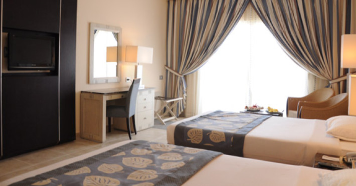 Clasificat la categoria de 5 stele, hotelul este alcatuit din 3 cladiri ce insumeaza 540 de camere. Toate sunt modern utilate, spatioase, cu vedere la mare, sau la munte și sunt prevazute cu terasă / balcon, aer condiționat, Tv / satelit, internet, facilitati pentru ceai/cafea, seif și mini-bar.Baile sunt elegante dotate cu dus /cada, uscator pentru par si articole de toaleta.