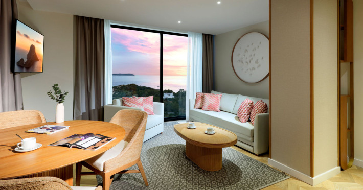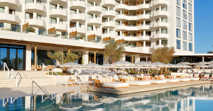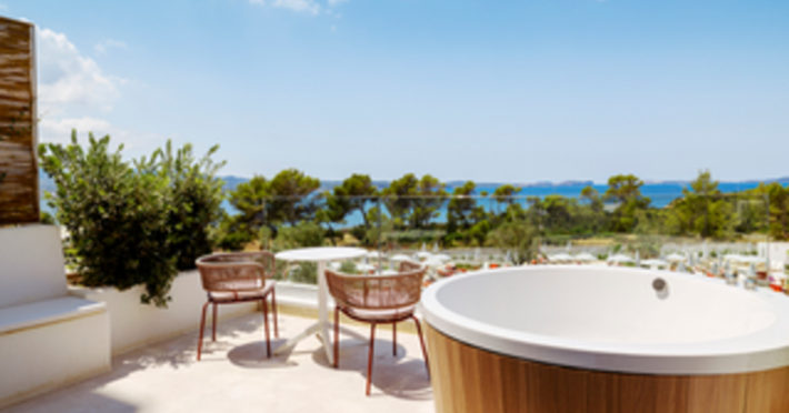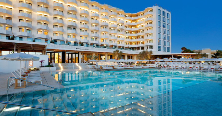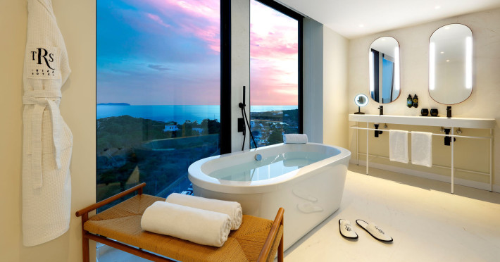 The hotel TRS IBIZA HOTEL is approximately 24 km from the airport. On the beach are beach towels available. The hotel is equipped with a 24h reception, a lobby bar, Wi-Fi, 3 lifts, a hairdresser, a jacuzzi, showers and changing rooms as well as parking spaces (for a fee). At the pool, pool towels are available for free. You can store your luggage in the hotel's storage room. There is also a laundry service available at an additional cost to customers. For your comfort, in addition to the concierge service the hotel page will ensure you are looked after. Guests at the accommodation can get a wake-up call from the hotel personnel. For conventions and other business meetings, the hotel offers a conference area with a total of 6 seats. If you want to explore the holiday region, you can use the car rental service close to the hotel (extra fee). Pets like cats and dogs up to 10 kg are allowed in the hotel (for a fee). Euro/Master Card and Visa are accepted as means of payment. Due to its barrier-free facilities , such as barrier-free entrances, the hotel is also suitable for wheelchair users. Catering For the meals, there are several bars, the pool bar as well as a sky bar. For dinner, guests are asked to wear appropriate clothing in the restaurant. Sports & Leisure To keep your fitness up on holiday, there is a gym for guests to use. During your holiday you can also take part in yoga courses. A sauna (extra fee) and a wellness shower await you in the. The hotel also offers massages (extra fee). In terms of adult entertainment, live music is presented on certain days. Additional information The accommodation, last renovated in 2021, has a total of 378 rooms. The facility is exclusive to adult guests. The hotel staff speak English, German and Spanish.The hotel TRS IBIZA HOTEL is approximately 24 km from the airport. On the beach are beach towels available. The hotel is equipped with a 24h reception, a lobby bar, Wi-Fi, 3 lifts, a hairdresser, a jacuzzi, showers and changing rooms as well as parking spaces (for a fee). At the pool, pool towels are available for free. You can store your luggage in the hotel's storage room. There is also a laundry service available at an additional cost to customers. For your comfort, in addition to the concierge service the hotel page will ensure you are looked after. Guests at the accommodation can get a wake-up call from the hotel personnel. For conventions and other business meetings, the hotel offers a conference area with a total of 6 seats. If you want to explore the holiday region, you can use the car rental service close to the hotel (extra fee). Pets like cats and dogs up to 10 kg are allowed in the hotel (for a fee). Euro/Master Card and Visa are accepted as means of payment. Due to its barrier-free facilities , such as barrier-free entrances, the hotel is also suitable for wheelchair users. Catering For the meals, there are several bars, the pool bar as well as a sky bar. For dinner, guests are asked to wear appropriate clothing in the restaurant. Sports & Leisure To keep your fitness up on holiday, there is a gym for guests to use. During your holiday you can also take part in yoga courses. A sauna (extra fee) and a wellness shower await you in the. The hotel also offers massages (extra fee). In terms of adult entertainment, live music is presented on certain days. Additional information The accommodation, last renovated in 2021, has a total of 378 rooms. The facility is exclusive to adult guests. The hotel staff speak English, German and Spanish.