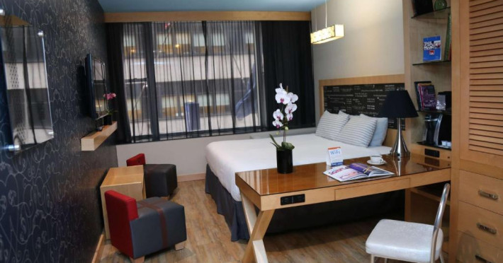 Situat la doar 5 minute de mers pe jos de Penn Station, acest hotel modern din Manhattan oferă Wi-Fi gratuit și un restaurant modern. Oaspeții pot verifica e-mailurile și pot imprima articole de pe tablete portabile.