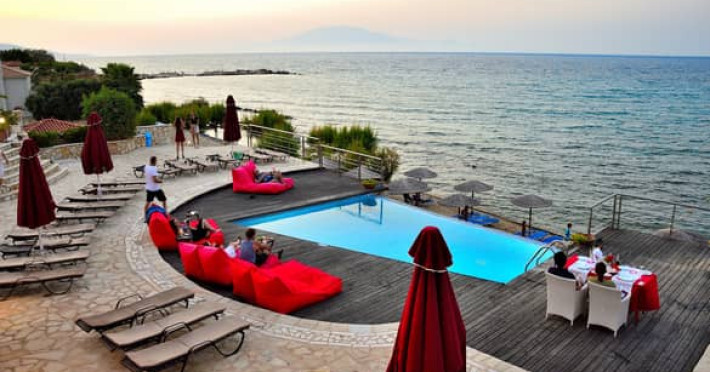 The hotel build direct on the seashore next to Pahi Ammos beach at the beautiful area of Kypseli village, which combines the virgin landscape, full of olive trees, with the crystal blue sea. The stylish setting combined with the outstanding service guarantees pleasant, idyllic vacations. Built directly above sea, Tsamis Zante, would suit those looking for comfort and exceptional views in a stylish, elegant Greek setting.The hotel build direct on the seashore next to Pahi Ammos beach at the beautiful area of Kypseli village, which combines the virgin landscape, full of olive trees, with the crystal blue sea. The stylish setting combined with the outstanding service guarantees pleasant, idyllic vacations. Built directly above sea, Tsamis Zante, would suit those looking for comfort and exceptional views in a stylish, elegant Greek setting.