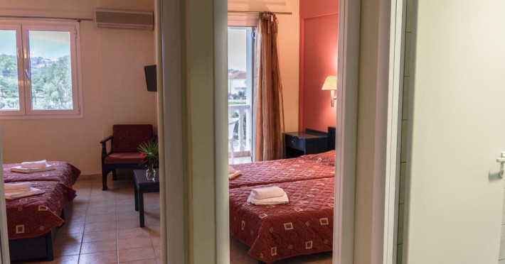 Sunt disponibile 73 camere. Camerele de la Tsamis Zante Hotel & Spa sunt dotate cu aer condiționat, Tv cu canale prin satelit și seif. Unele camere au balcon cu vedere la mare, unde oaspeții pot admira apusul sau răsăritul soarelui. În camere există baie cu cadă sau duș prevăzută cu foehn. Fiecare cameră dispune de minibar. Curățenia in cameră se face zilnic. Proprietatea oferă camere pentru familie cu o suprafață mai mare și un număr mai mare de paturi față de cele standard.