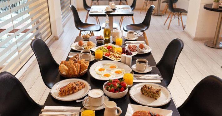 Oaspeții pot savura un mic dejun tip bufet, englezesc/irlandez complet sau vegetarian.