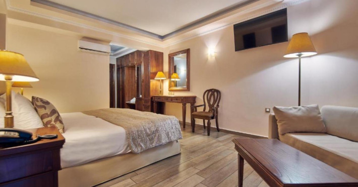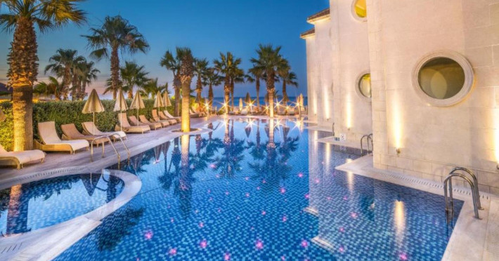 Palazetto Suites is a luxurious Adults only resort on private grounds on the golden Tsilivi beach, promising a dream holiday, with the beautiful natural environment setting the tone, while the colours of the sky, sun and sea engage in fanciful games with the senses. Part of the Blue Collection Resorts, Palazetto Suites, adheres to the principles of aesthetics and practicality: respect for the surroundings, high-quality design throughout and amenities that fulfil every desire. Just twenty-seven suites of 3 different types, six with direct access to the delightful swimming pool. The pool itself is a 155 sq.m. architectural wonder with impressive mosaics and fibre optics, that welcomes couples craving complete detoxification from the rhythm of everyday life and who seek absolute rejuvenation. The VIP services offered by Blue Collection Resorts will satisfy your every wish, while the enchanting island of Zakynthos awaits exploration and discovery of its most beautiful secrets!Datorita dinamicitatii domeniului disponibilitatea ofertelor se modifica de la un moment la altul. De aceea ofertele sunt valabile in limita locurilor disponibile. Agentia nu este responsabila pentru eventualele neconcordante care pot aparea intre informatiile privind tarifele si alte detalii din site si informatiile primite in agentie. In aceste cazuri vor avea prioritate, intotdeauna, informatiile primite in agentie.