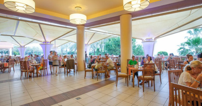 La Pegasos Resort oaspeții au la dispoziție 3 restaurante unde pot savura mâncăruri delicioase, în stil bufet sau à la carte. Preparate din bucătăria internațională și italiană sunt oferite zilnic la micul dejun, prânz și cină. Masa poate fi servită atât în interior, cît si în aer liber, pe terasă, în funcție de vreme. Oaspeţii pot avea diverse băuturi răcoritoare sau alcoolice la bar. În cadrul proprietății există și un snack bar care servește băuturi și gustări.