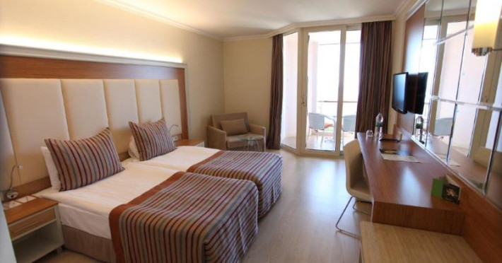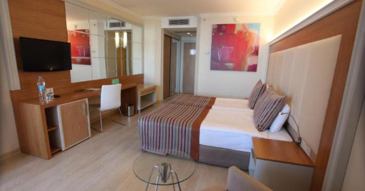 TT Pegasos Resort oferă o atmosferă minunată de vacanță, perfectă pentru a fi savurată în familie. Acest complex de 5 stele dispune de o zonă de plajă privată, iar experiența se adresează în special turiștilor care caută un sejur mai liniștit. Resortul vă întâmpină cu căldură într-o unitate elegantă de 5 nivele, accesibilă prin intermediul unui lift, oferind un total de 414 camere confortabile și moderne pentru a vă asigura o ședere plină de confort și relaxare.Descriere hotel